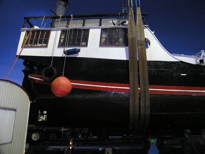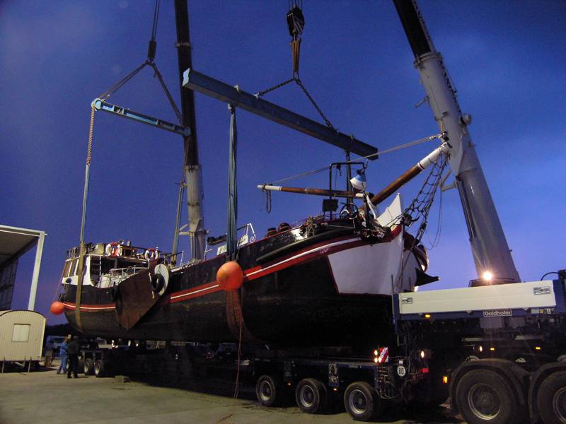 Hafen. Von dort mußte das Schiff auf dem Straßenweg zur Goizsche