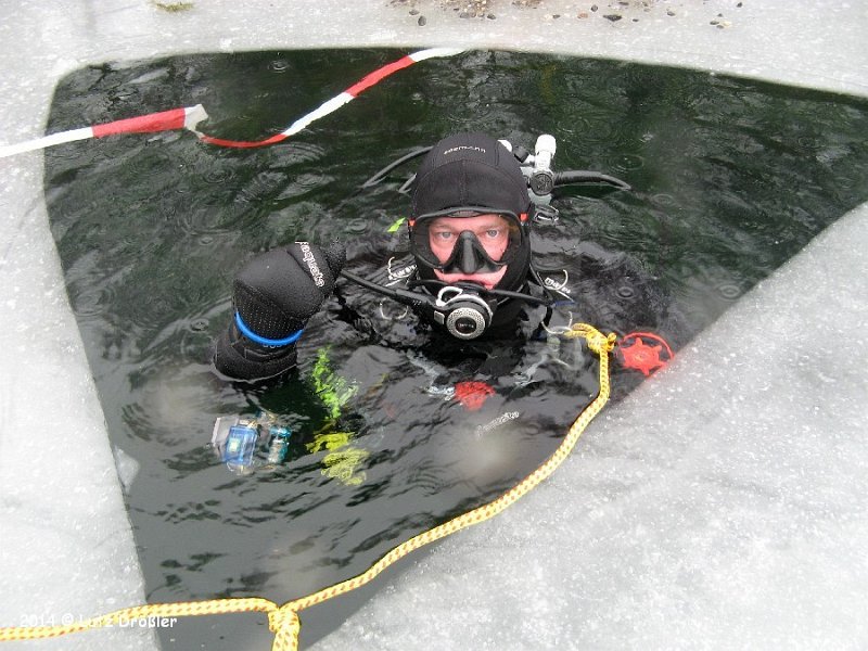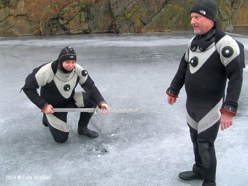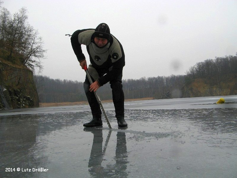 Am 2. Februar 2014 war erstmalig in dieser Wintersaison ein Eistauchen im Ammelshainer Steinbruch möglich.