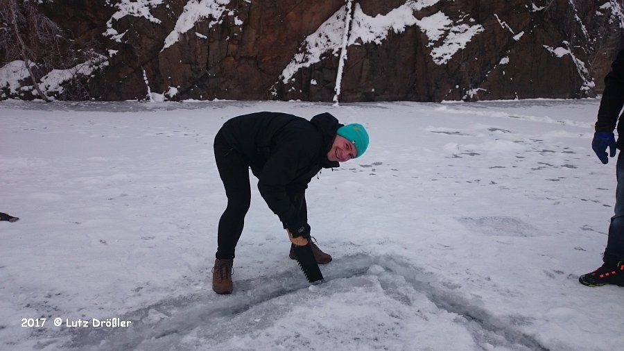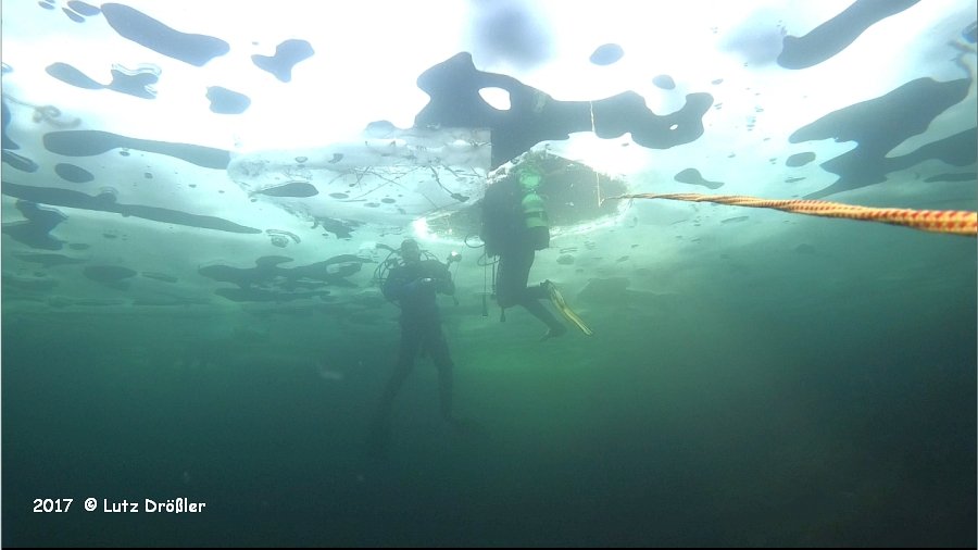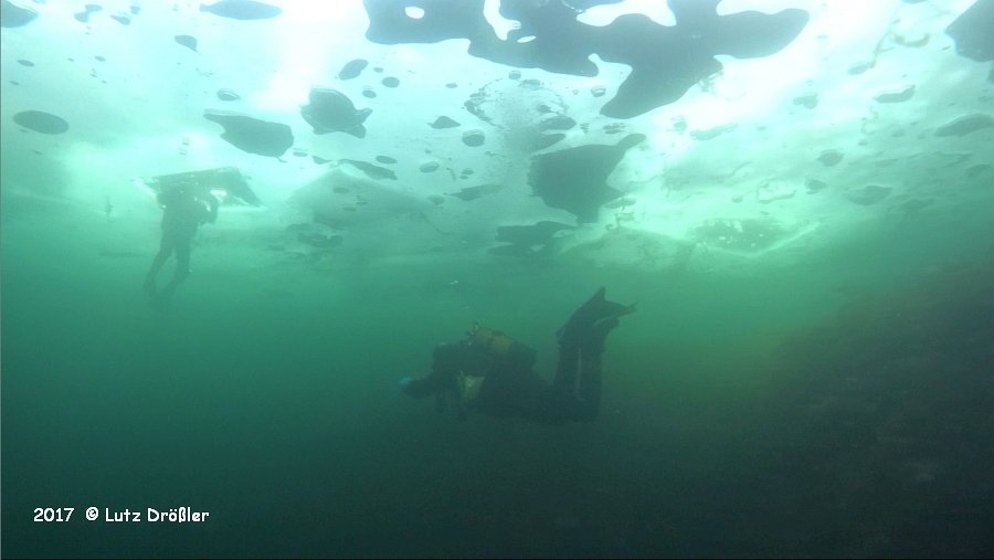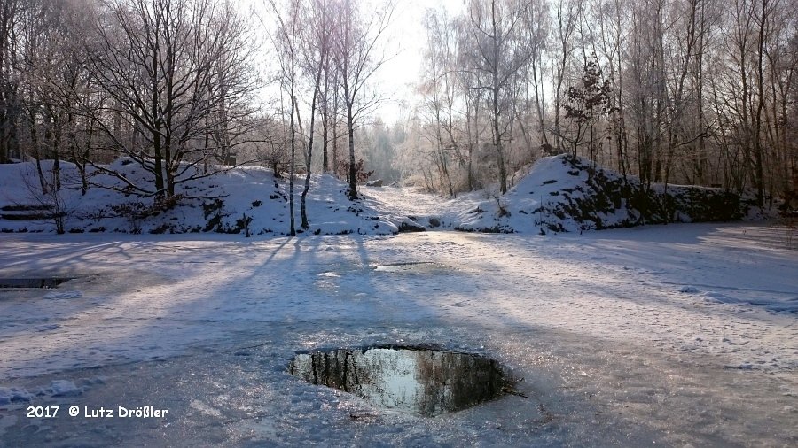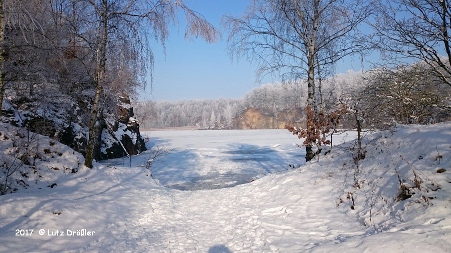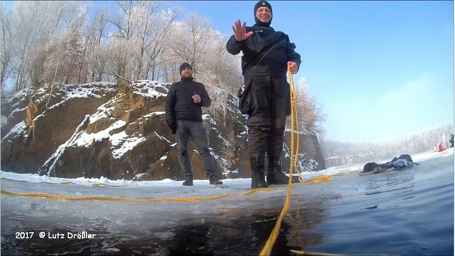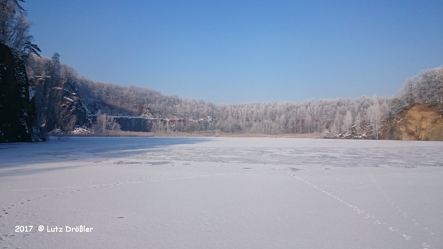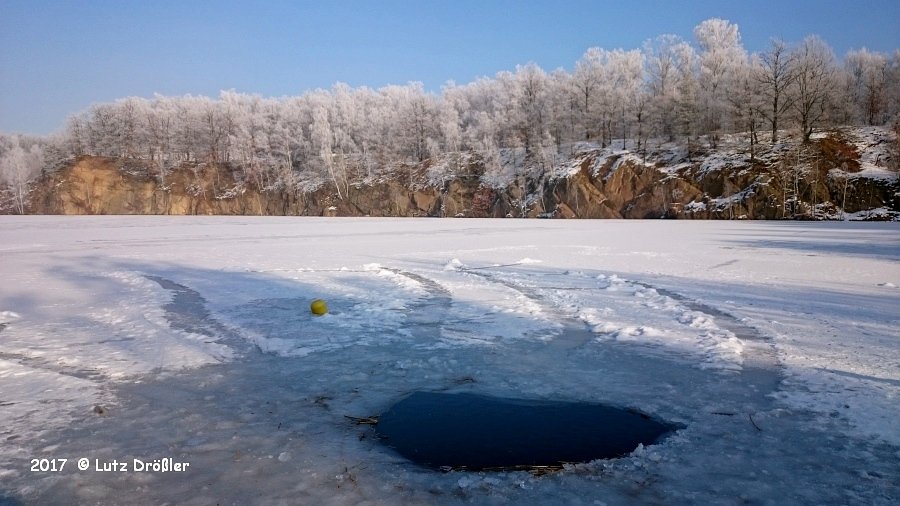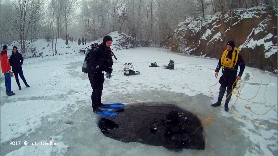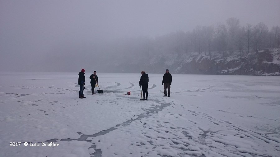 22.Januar 2017 - schönstes Winterwetter ... bei -8°C und anfänglichem Frühnebel kam am Mittag doch noch die Sonne raus. Mit einer Eisdicke von ca. 12 cm lud der Steinbruch regelrecht zum Eistauchen ein.