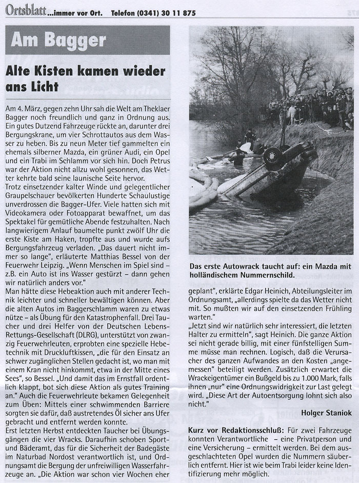 Das Ortsblatt von Schönefeld-Mockau-Thekla schrieb in der März-Ausgabe 2000: