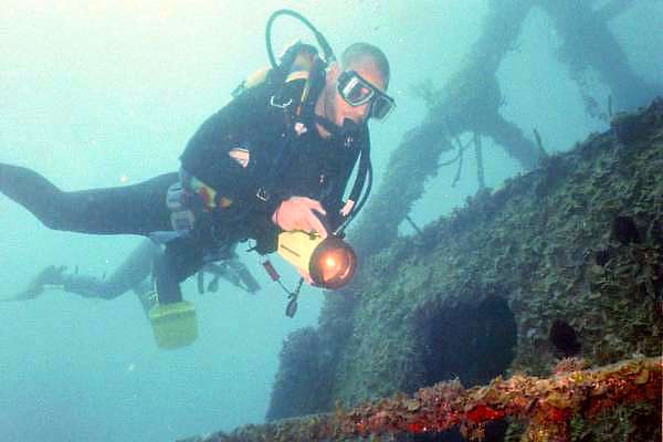Stark bewachsene Wrachaufbauten.