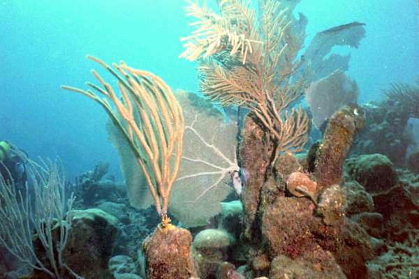 Foto-Galerie Cuba - Karibisches Meer Weisse Gorgonien mit Fächerkorallen - typisch Unterwasserlandschaft. zurück