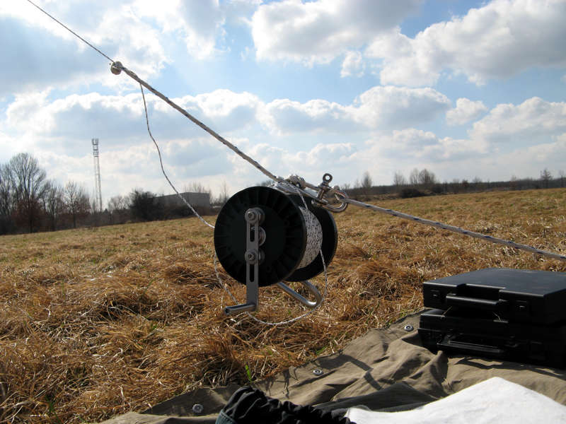 Hilfe eines Drachens. Man benötigt einen zugstarken Drachen, der ruhig