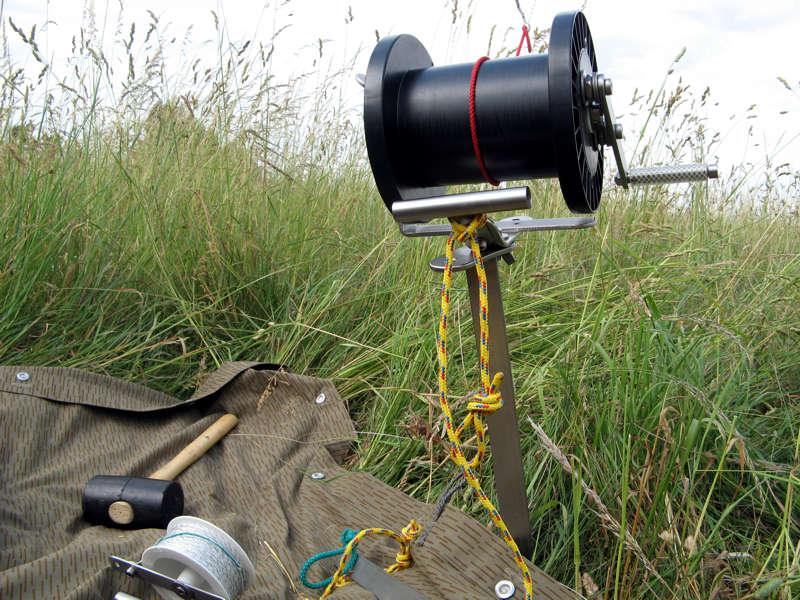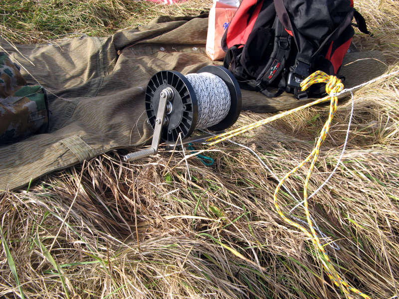 Der etwas längere Anker für sandigen Boden. Der Transport der großen sperrigen Trommeln ist mit Rucksack und Fahrrad sehr platzintensiv. |