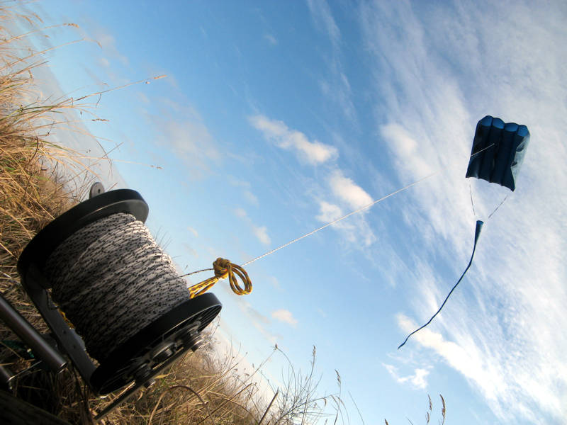 Drachenleine ist hinter einem Stopperknoten in der Ankerleine als Zugentlastung