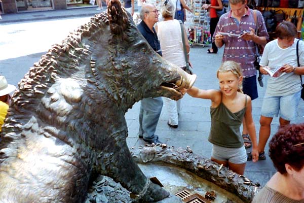 Foto-Galerie Florenz Ein Wildschwein in Bronze gegossen - il Porcellino verziehrt seit 1612 einen Brunnen auf dem Markt.