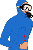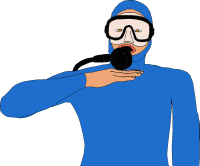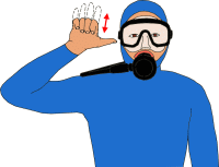 Zeigefinger ausgestreckt, die beiden Arme gehen mehrmals auseinander und
