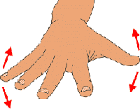 zugewand, der Daumen gespreizt, die Finger öffnen und schließen