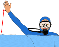 nach oben, der Arm beschreibt vor dem Körper schnelle Kreise um eine