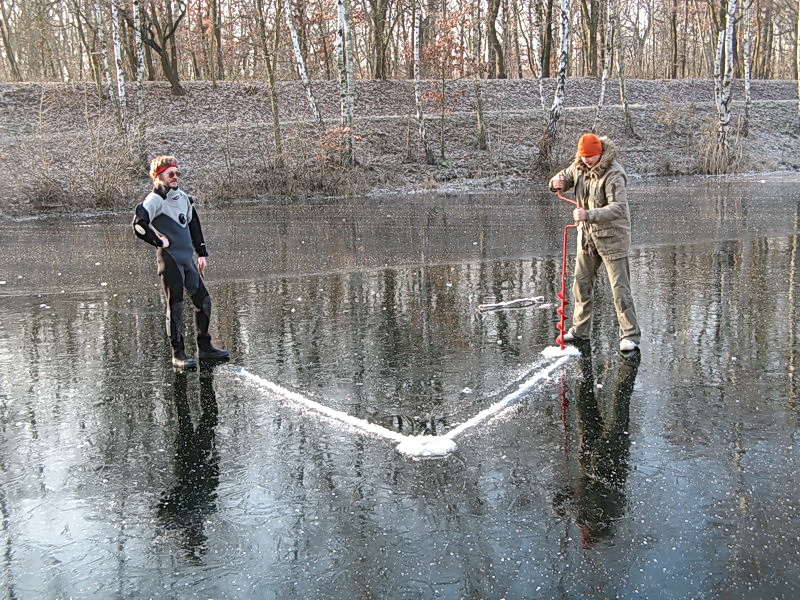 Eistauchen im Elster-Saale-Kanal in Leipzig
