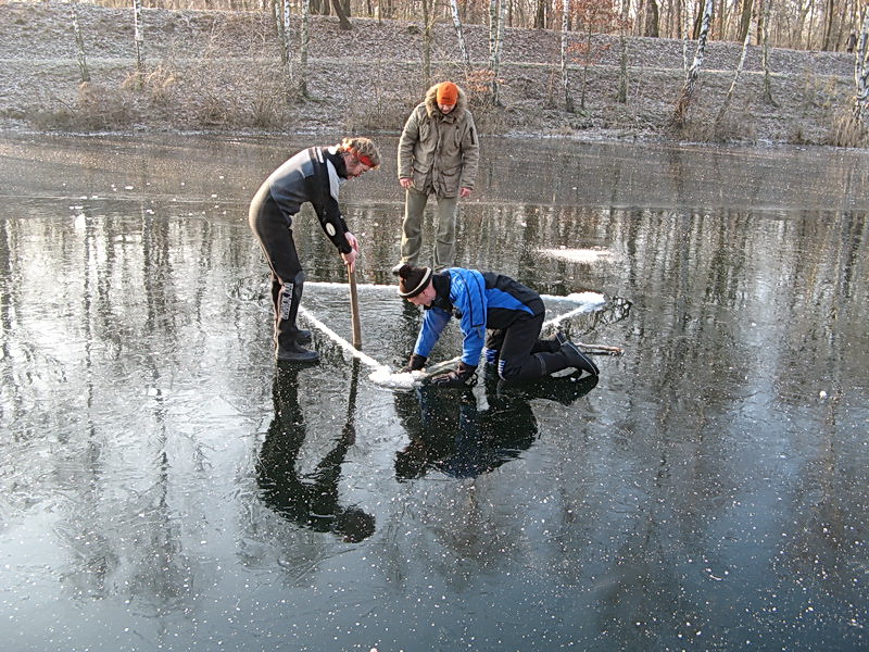 Eistauchen im Elster-Saale-Kanal in Leipzig