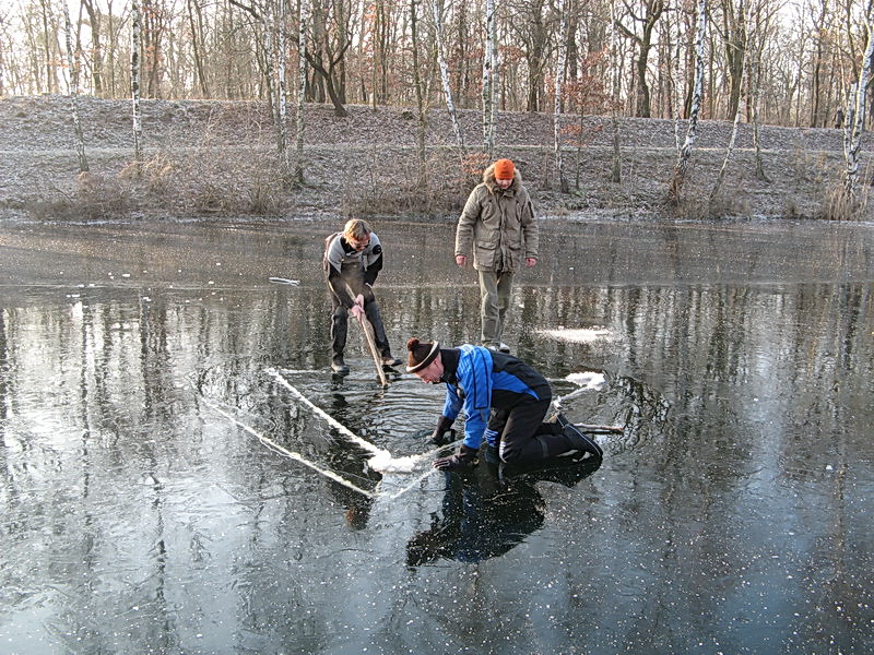 Eistauchen im Elster-Saale-Kanal in Leipzig