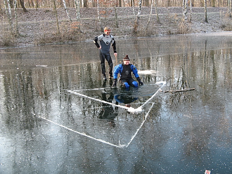 Eistauchen im Elster-Saale-Kanal in Leipzig