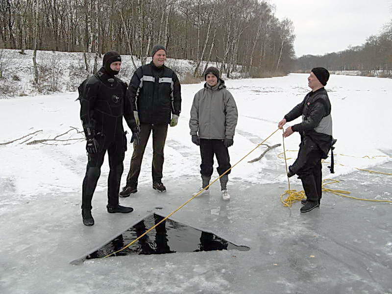 Eistauchen im Elster-Saale-Kanal in Leipzig