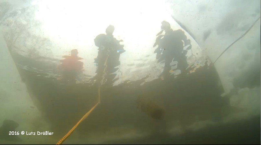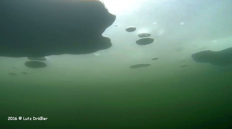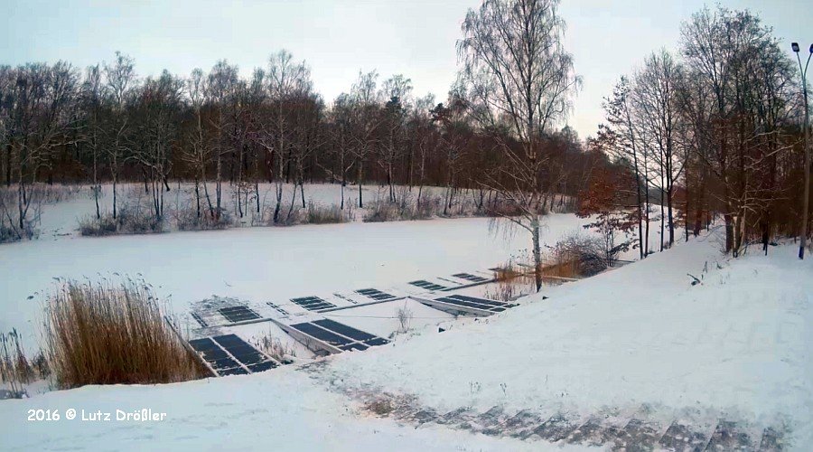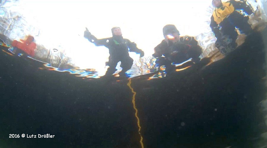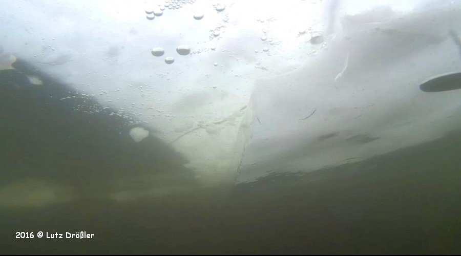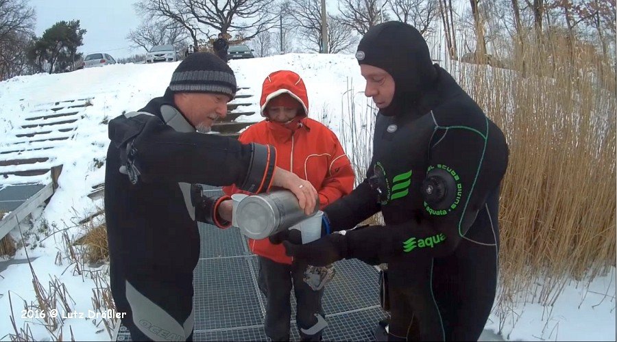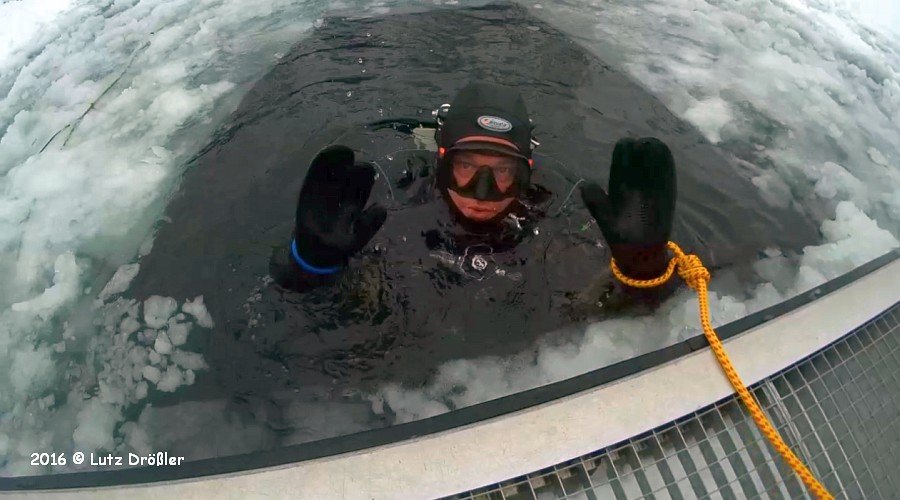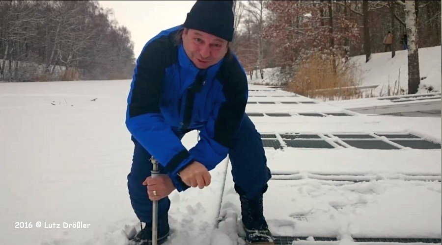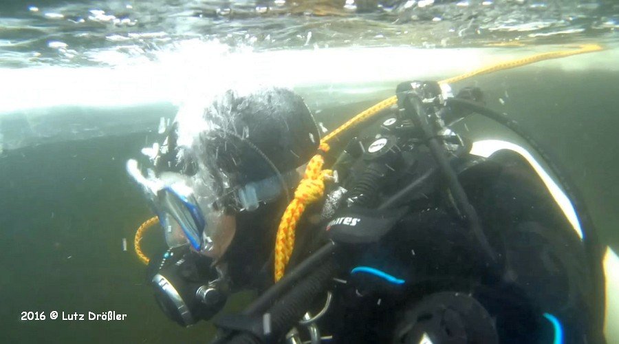 Eistauchen am verschneiten Elster-Saale-Kanal in Burghausen am 16. Januar 2016