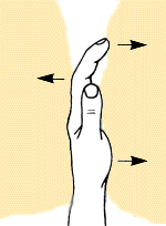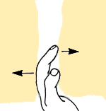 Die Hand wird in den Riss gelegt und durch Drehen