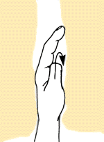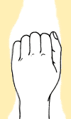 wird durch Beugung verklemmt. Fingerglieder werden gebeugt.