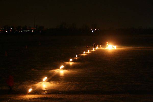 Der Weg zum Eisloch wurde mit Fackeln beleuchtet.