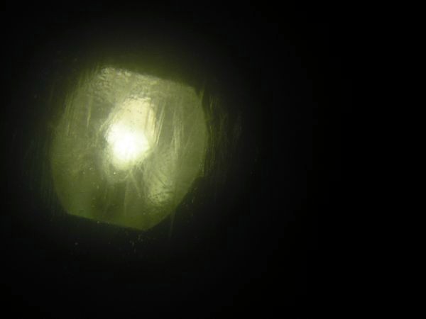 Scheinwerfer leuchtet durch das Eis.