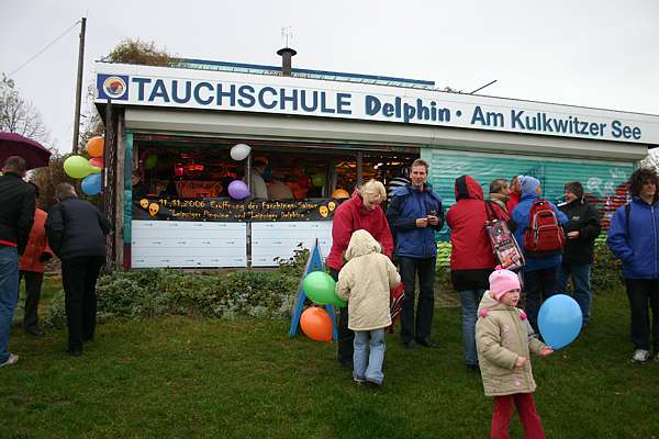 Treffpunkt zum 6. Faschingsschwimmen an der Tauchschule Delphin.