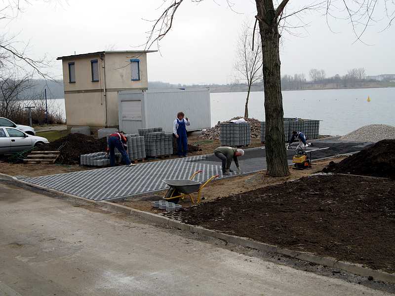 Einsetzen der Rasengitterplatten.
