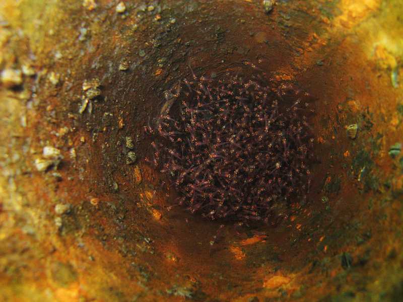 In sicherem Abstand halten sich die Süsswassergarnelen auf.