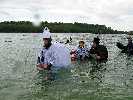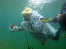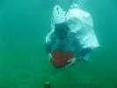 See die 1. Unterwasser-Taucher-Hochzeit in 5 Meter tiefe auf einer Ausbildungsplattform