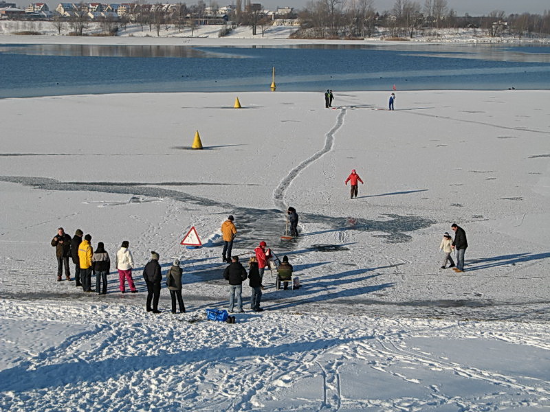 Zahlreiche Spaziergänger und Schaulustige beobachteten das Treiben auf dem Eis.