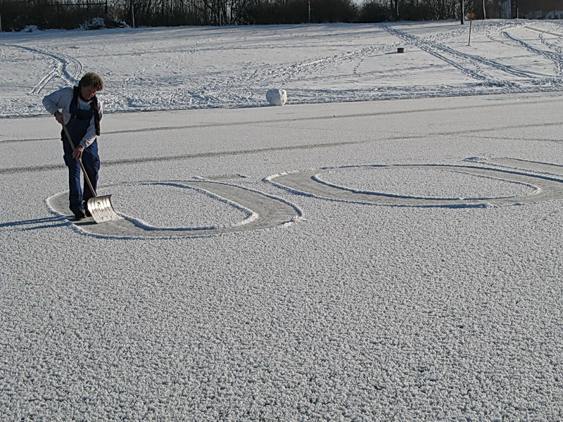 Riesige Eisflächen erhalten einen Schriftzug.