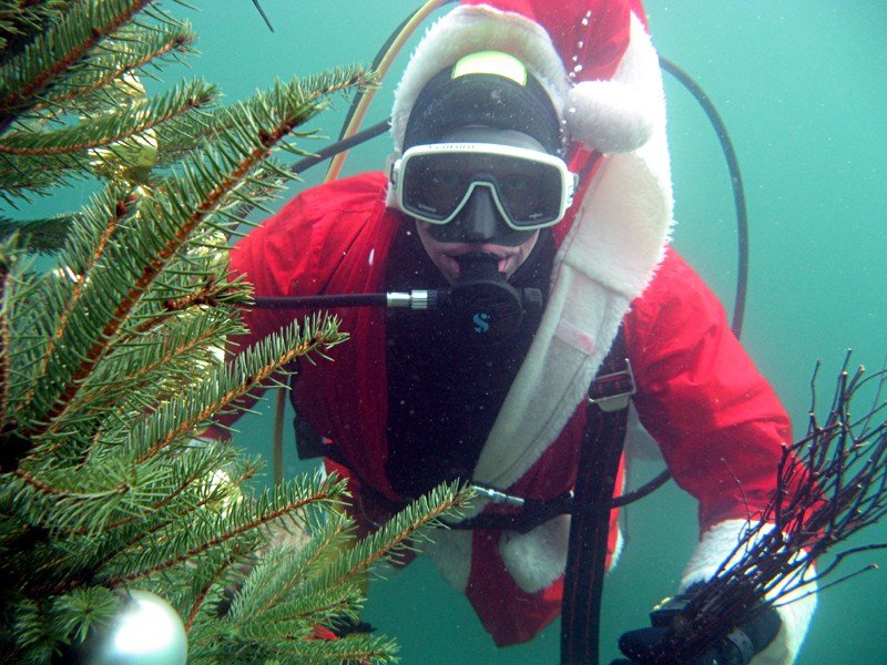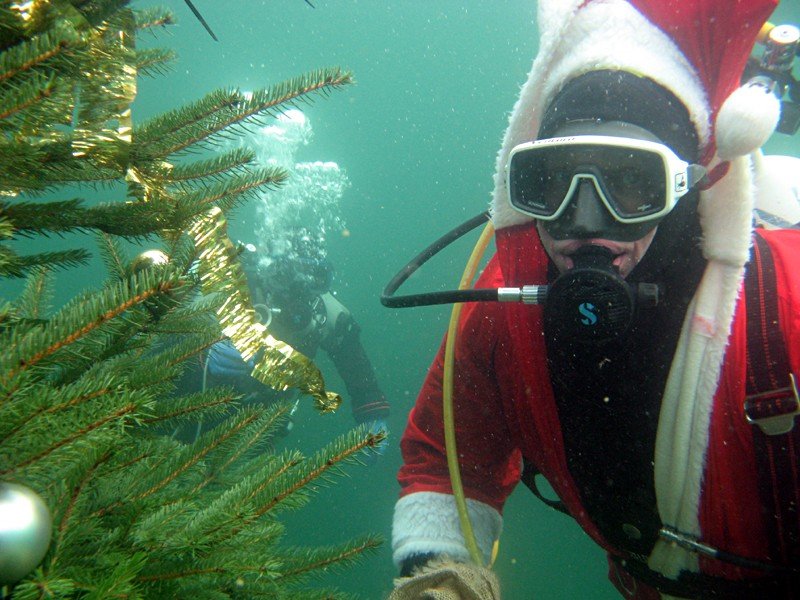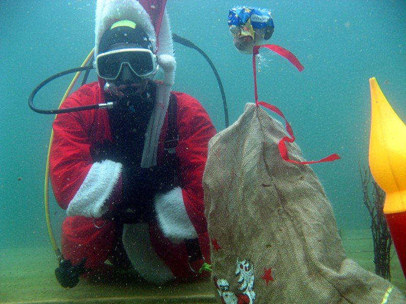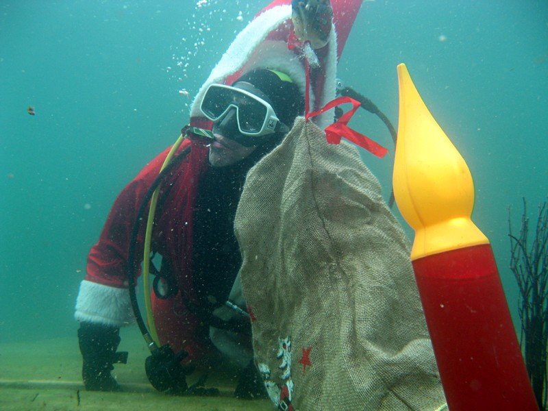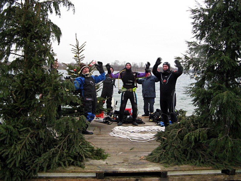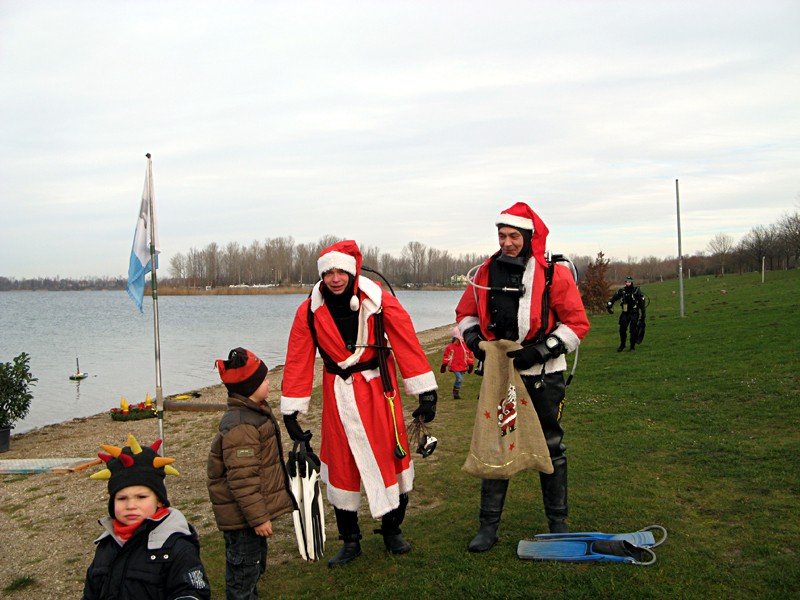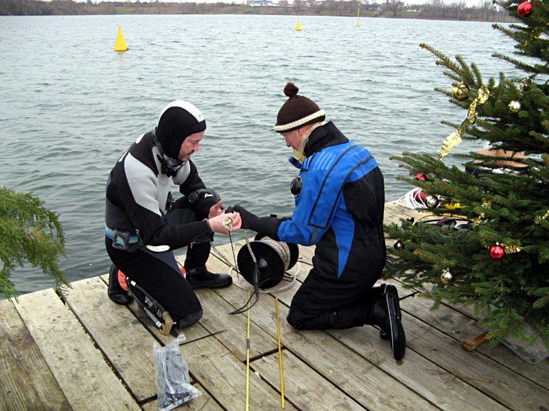 Alle Jahre wieder, auch diesmal konnte mit Video-Liveübertragung von unserer Plattform die Bescherung mit den Unterwasserweihnachtsmännern unter einem beleuchteten Tannenbaum im vorgeheizten Zelt bei Glühwein beobachtet werden.