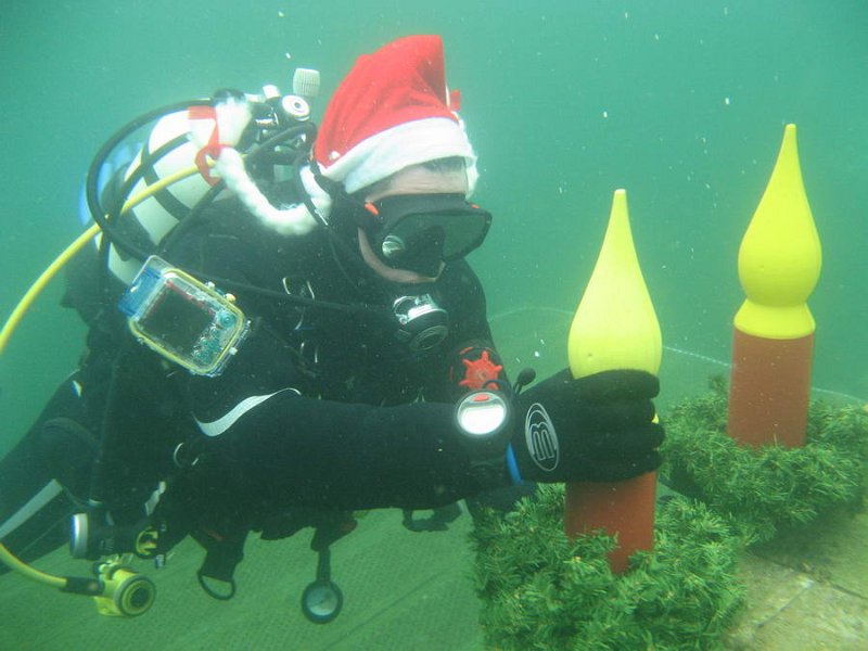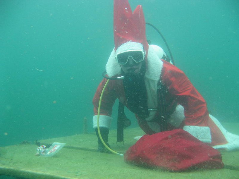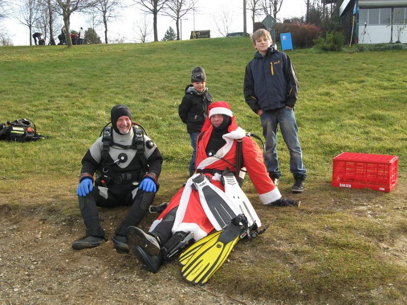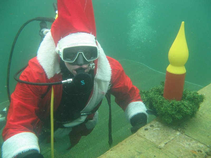 Bei 7° Wassertemperatur besuchten über 35 Taucher den Weihnachtsmann unter Wasser.
