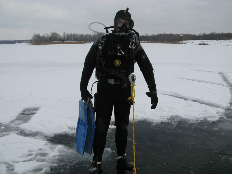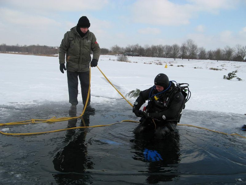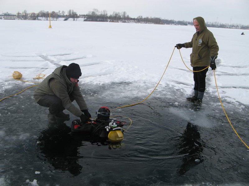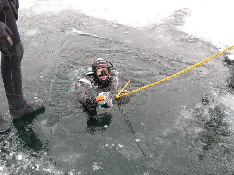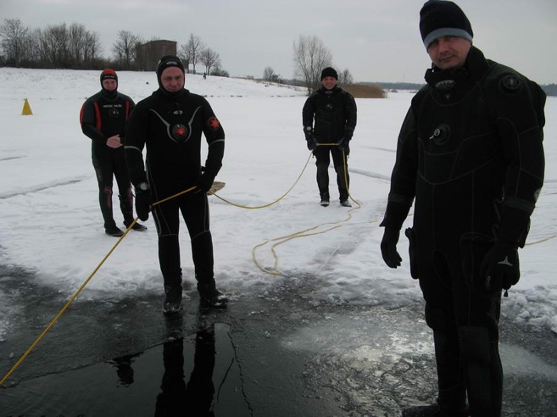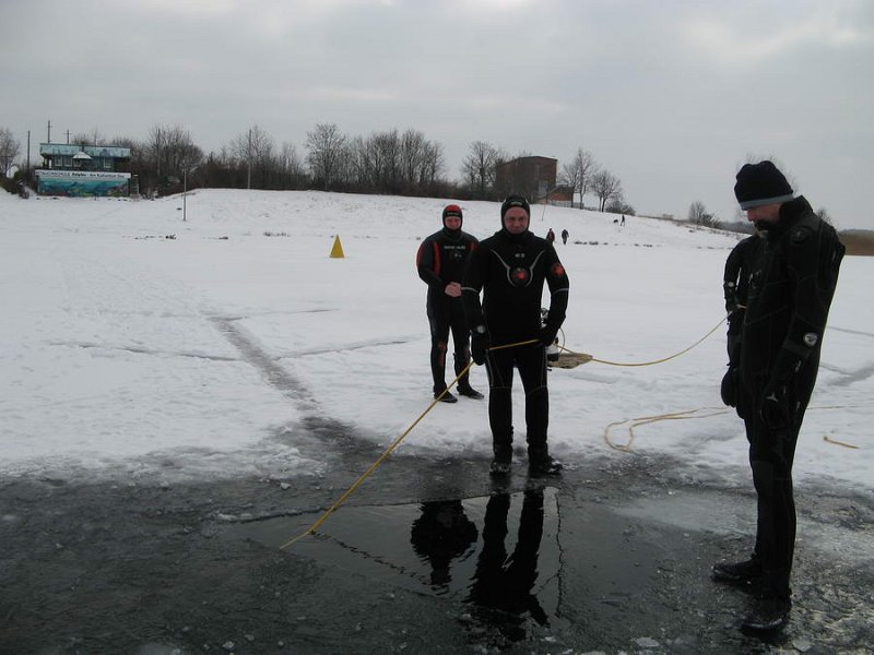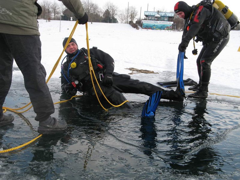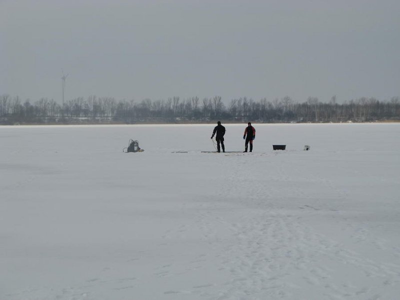 Eistauchen bei schneebedeckter 20 cm dicker Eisdecke am 11. Febr. 2012