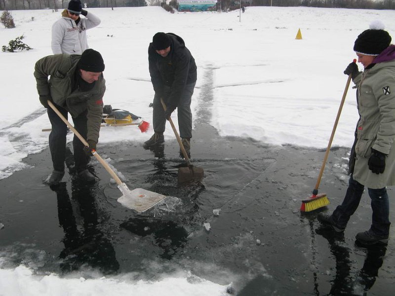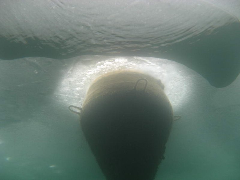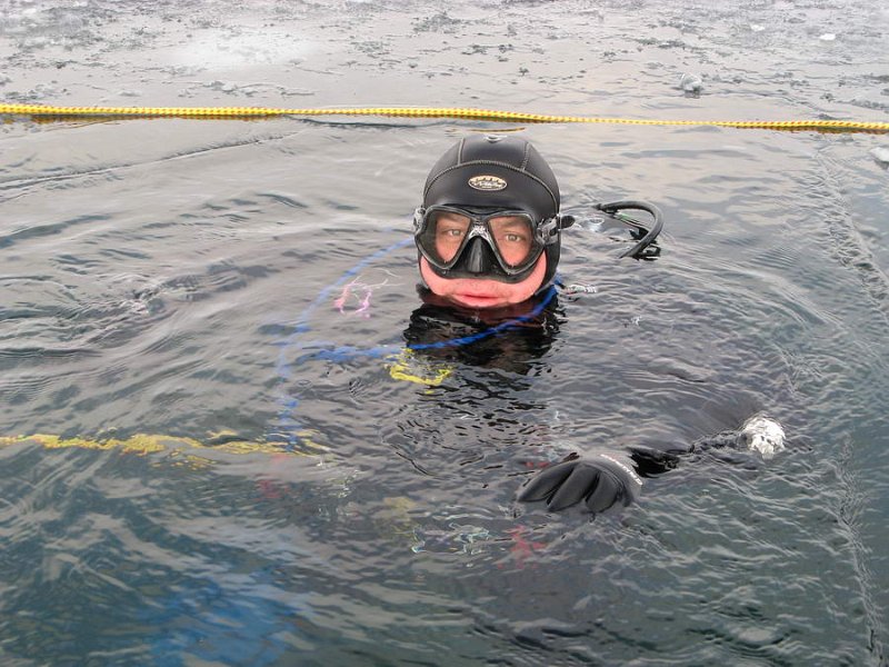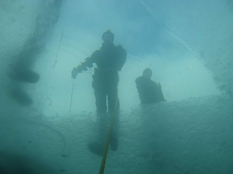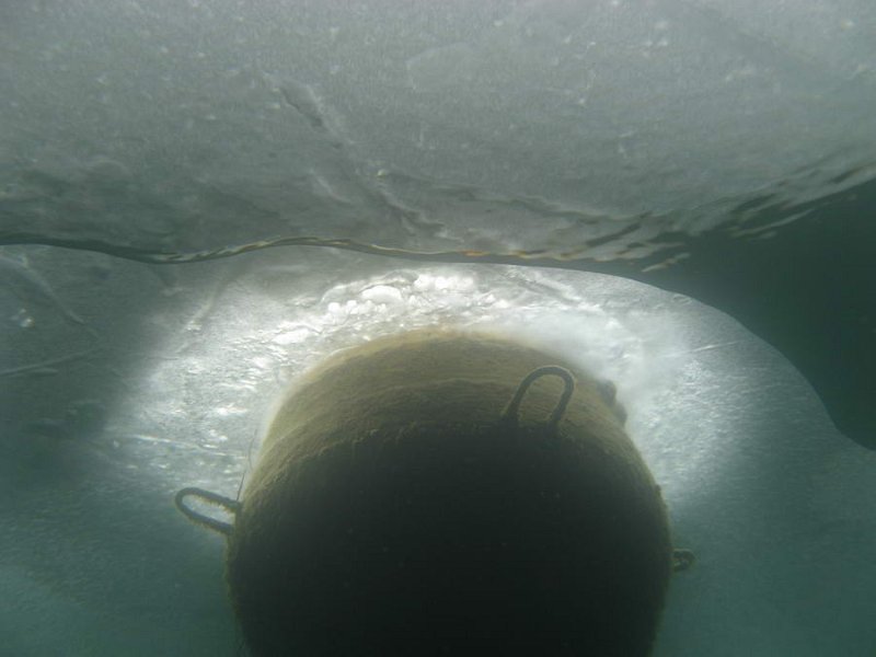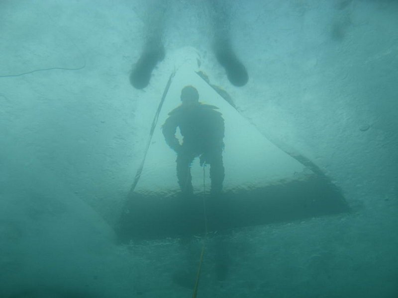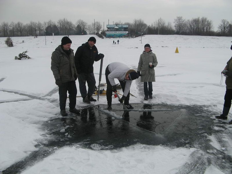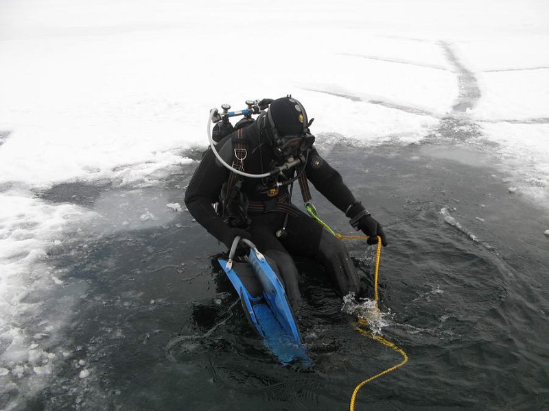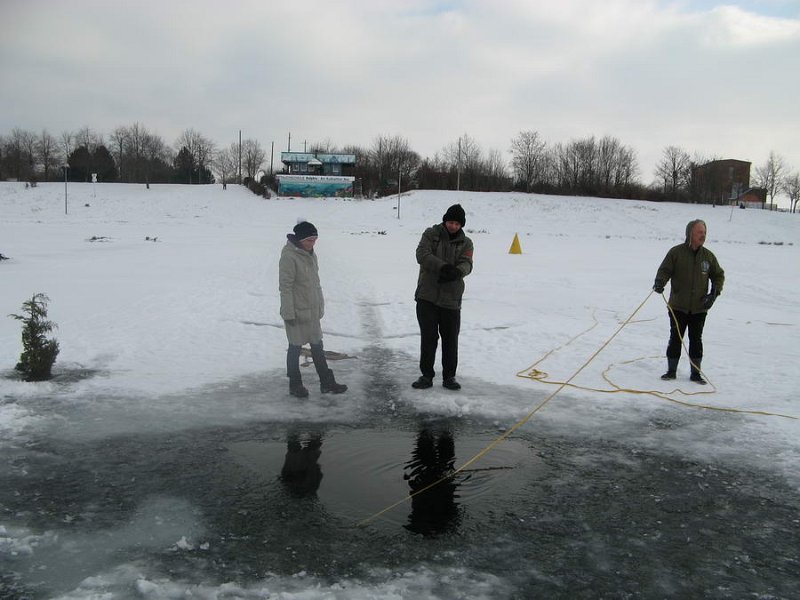 Eistauchen bei schneebedeckter 20 cm dicker Eisdecke am 11. Febr. 2012