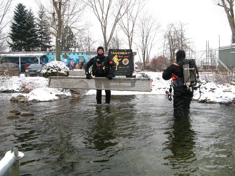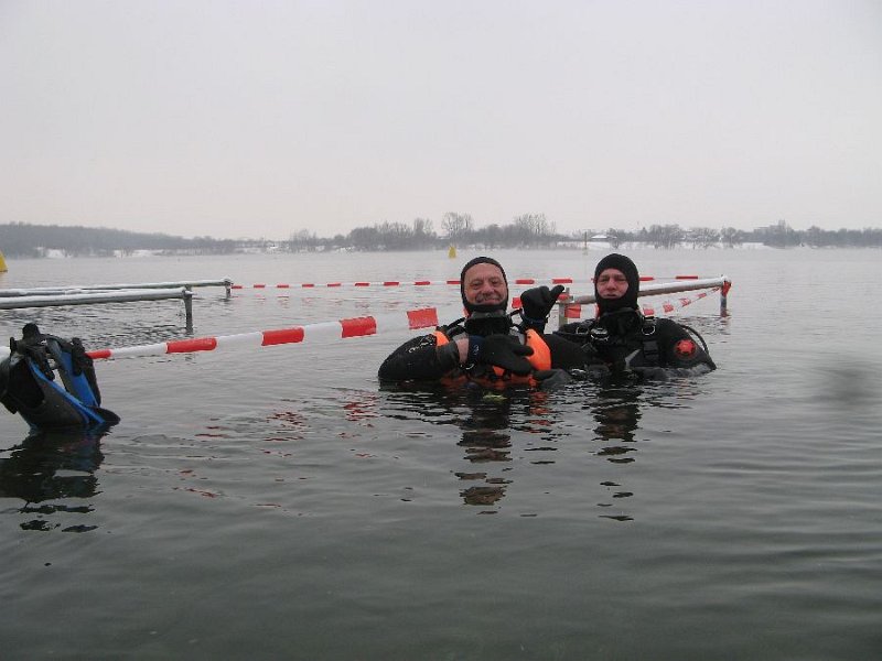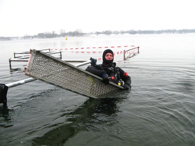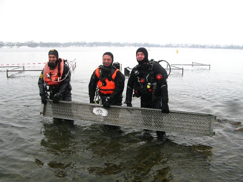 25.Jan. 2014 - Reparatur an der Einstiegsstelle E3. Wind und Wetter haben die Verriegelungen der Belege beschädigt und diese aus der Halterung gehoben. Um einen gefahrlosen Einstieg zu gewährleisten haben unerschrockene Taucher bei schlaffen -10 C° angefangen alles zu richtet. Spätestens zum Frühlingsauftakt ist ein sicheres Einsteigen wieder mögelich. Mit einem anschliessenden entspannten TG bei warmen 4°C auf 27m (+) wurde der heutige Einsatz beendet.