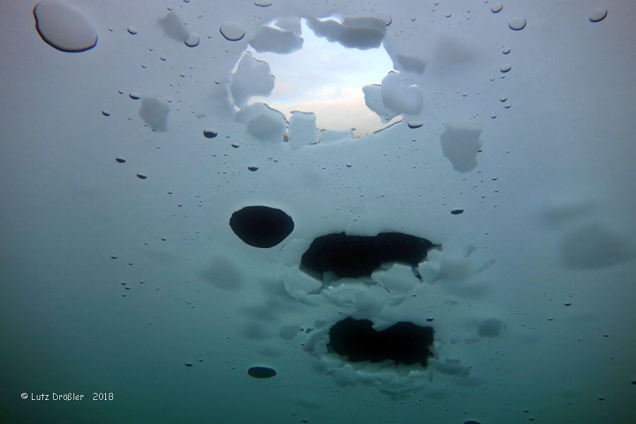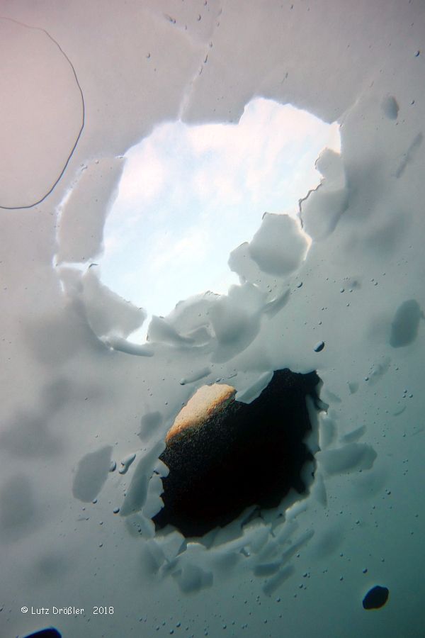 mit einer komplett geschlossenen 5 cm dicken Schnee- Eisdecke bot sich ein Tauchgang ganz besonderer Art