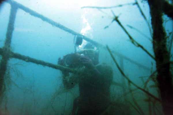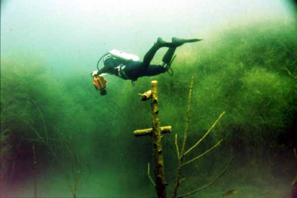 Tauchen im Kulkwitzer See zu GST-Zeiten 1987-Tauchen im "Tschechenbrett" und kristallklarem Wasser mit Sichtweiten bis zu 30 m. Fotos von L.Drößler zurück