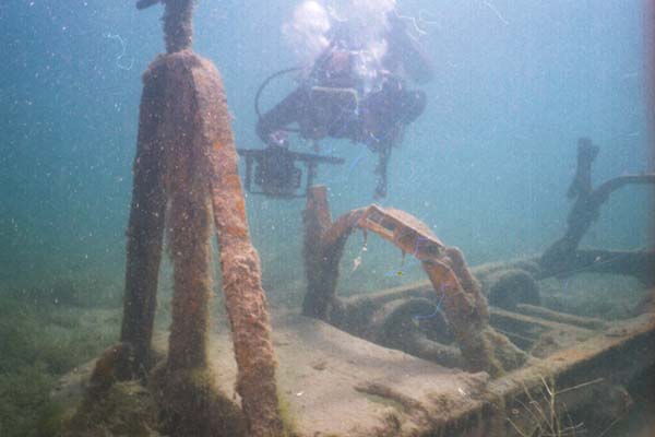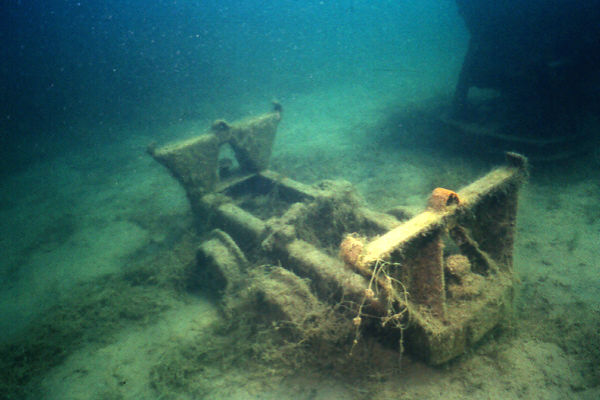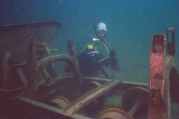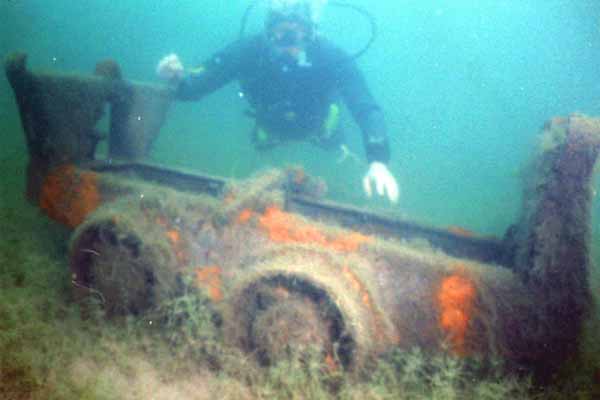 Bevor der Kulkwitzer See entstand, war an dieser Stelle ein Braunkohle-Tagebau. Spuren sind zum Teil noch heute zu erkennen. So gibt es noch Loren und Schienen vom Kohleabbau und ziemlich große Anker mit denen wahrscheinlich Schwimmbagger o.ä. befestigt wurden. Für weitere Tauch-Attraktionen wurden noch eine Lore aus Lobejün mit den Bundeswehrtauchern und eine aus dem Naturbad Nord-Ost von den Leipziger Delphine eingebracht.