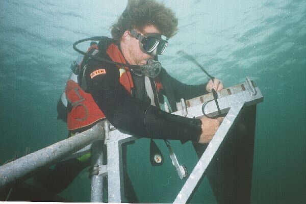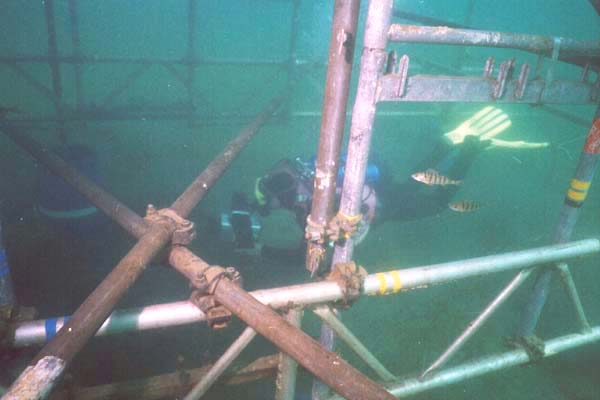 montiert, die ihre Ausbildungsfläche 2 bis 3 Meter über dem Seegrund