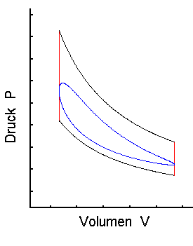 wird durch die oval aussehende Kurve im P-V Diagramm repräsentiert.