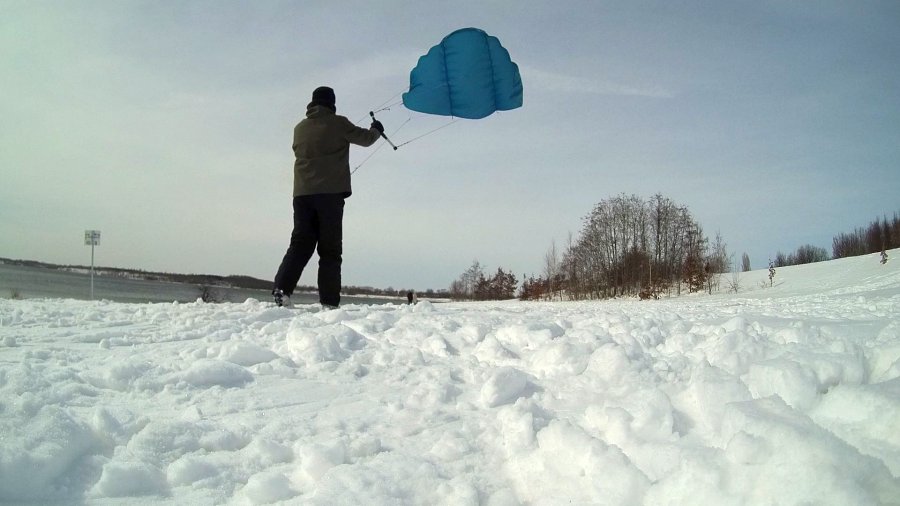 guter Zugdrachen an Land, im Schnee und sogar im Wasser
