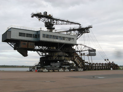 Baujahr: 1984 Hersteller: TAKRAF (Schwermaschinenbau Lauchhammer) Gewicht: 1718 Tonnen Abmessungen: Höhe 31 m, Länge 74,5 m, Förderrad 8,4 m Einsatzorte: Goitzsche, Tagebau Golpa Nord, TB Gröbern Besatzung: 3 – 5 |