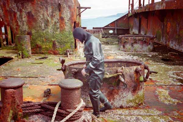 Der Einstieg mit einem Sprung durch die Luke in die gefluteten Laderäume ist noch einfach, der Ausstieg sollte wohl überlegt sein.