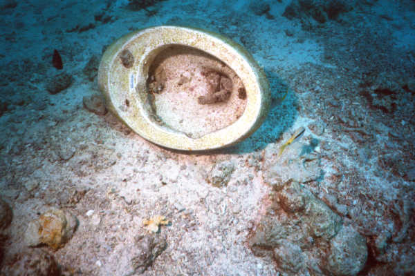 Reste einer versunkenen Ladung des Frachters ,,Jolanda" - WC-Becken.