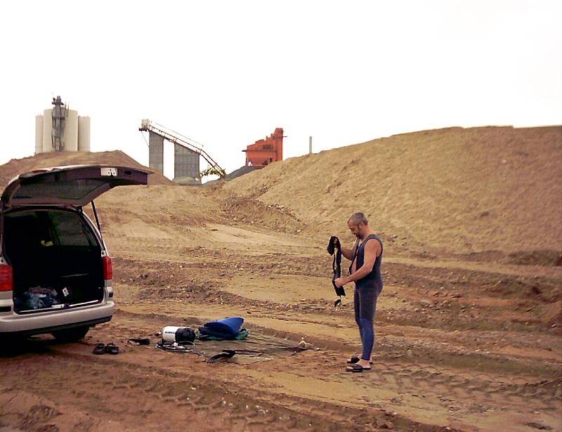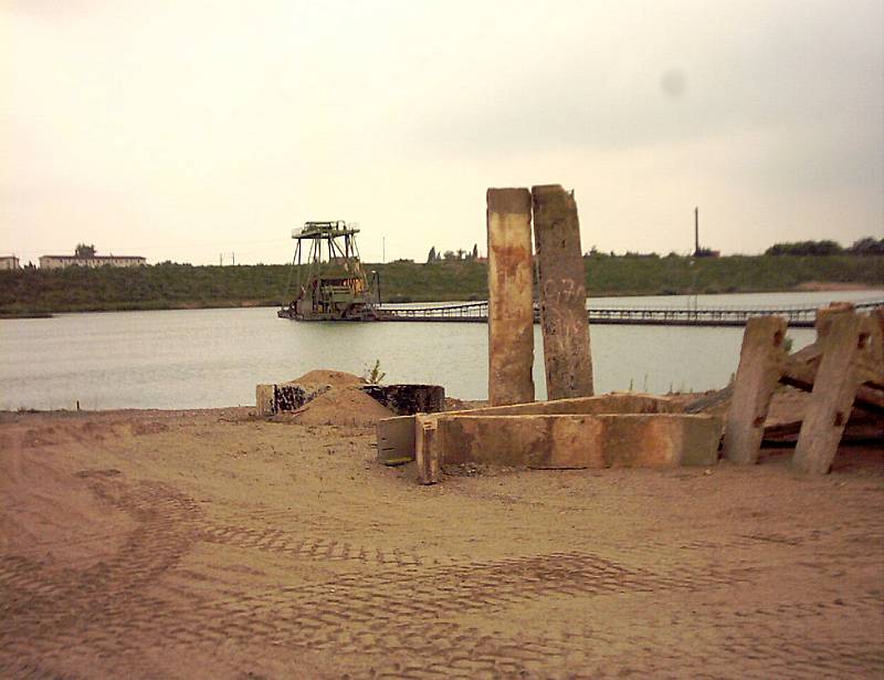 in einer Kiesgrube in der Nähe von Dresden einen Schwimmbagger repariert.