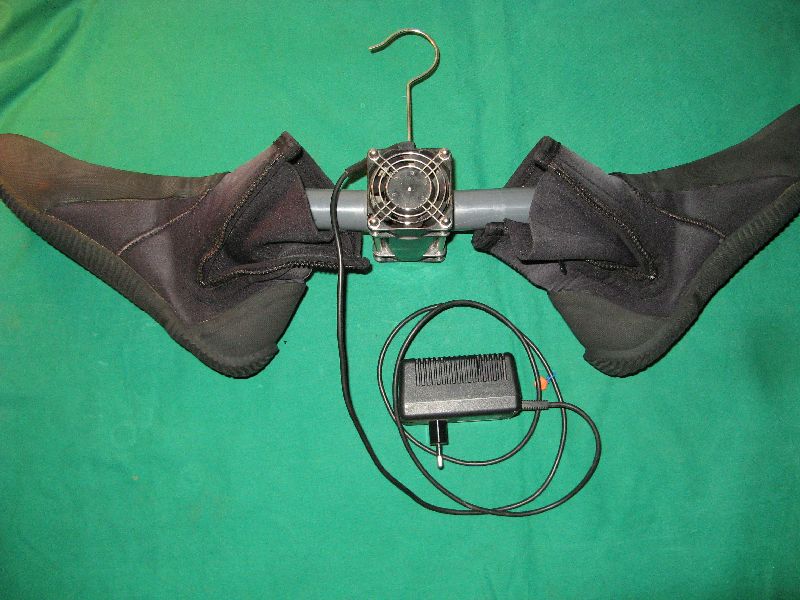 der Lüfter kann in das Bein oder Fußteil des Trocki`s eingefädelt werden und tocknet eben so schnell das Innenleben |