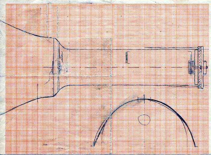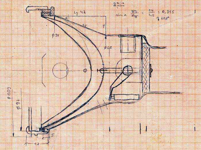 1986 - UW-Lampe für 4 Monozellen mit Fahrrad-Hologen-Lampe und verstellbaren Focus (von Breit- bis Punkt-Strahler) im handgeschmiedetem Gehäuse.