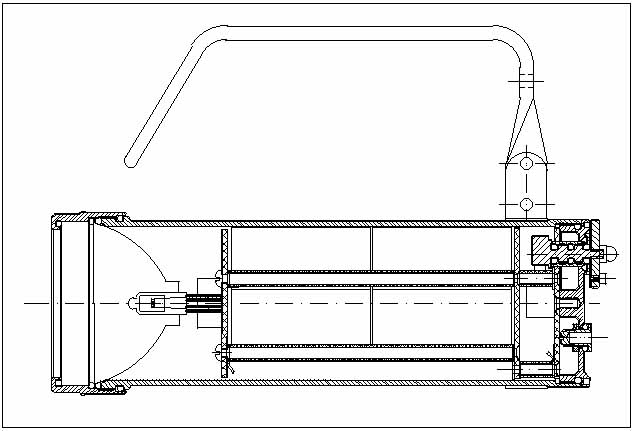 1995 - Kleine UW-Handlampe mit 6 Akkus 3A/h und Halogen-Lampe 35 W mit Punktstrahler; von außen verpolungssicher ladbar.