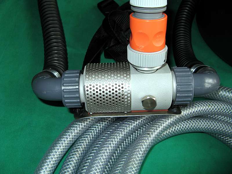 Reifen wird der schwimmende Eimer vom Taucher hinterher gezogen. Die Luftansaugung