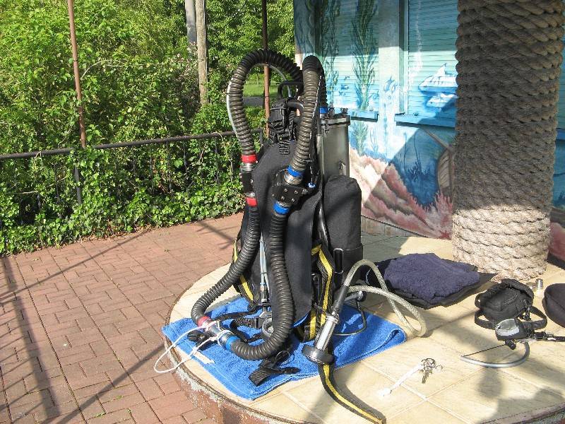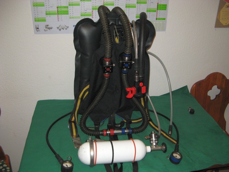 und 1 ltr. Druckluftflasche mit HD-Stufen, Poseidon Cyklon 5000 balanciert (für Tarrierung oder als Diluent) |