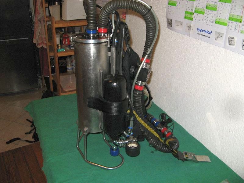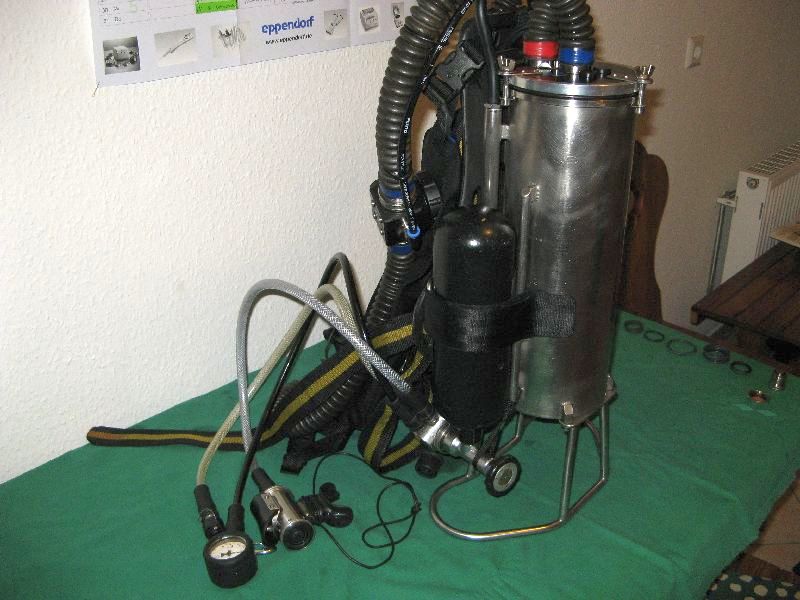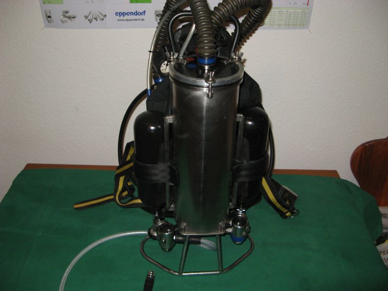 leider ist Edelstahl nicht für alles geeignet, da sich an Metallwänden Kondenswasser ansammelt, wurde der Atemkalkbehälter gegen einen aus Kunststoff (POM) getauscht |